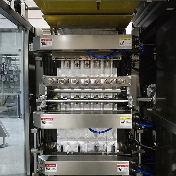 該系列多列四邊封顆粒包裝機采用先進的PLC加光電控制系統(tǒng),可自動完成計量、制袋、填充、封合、切斷、打印生產日期、切易撕口等工序。